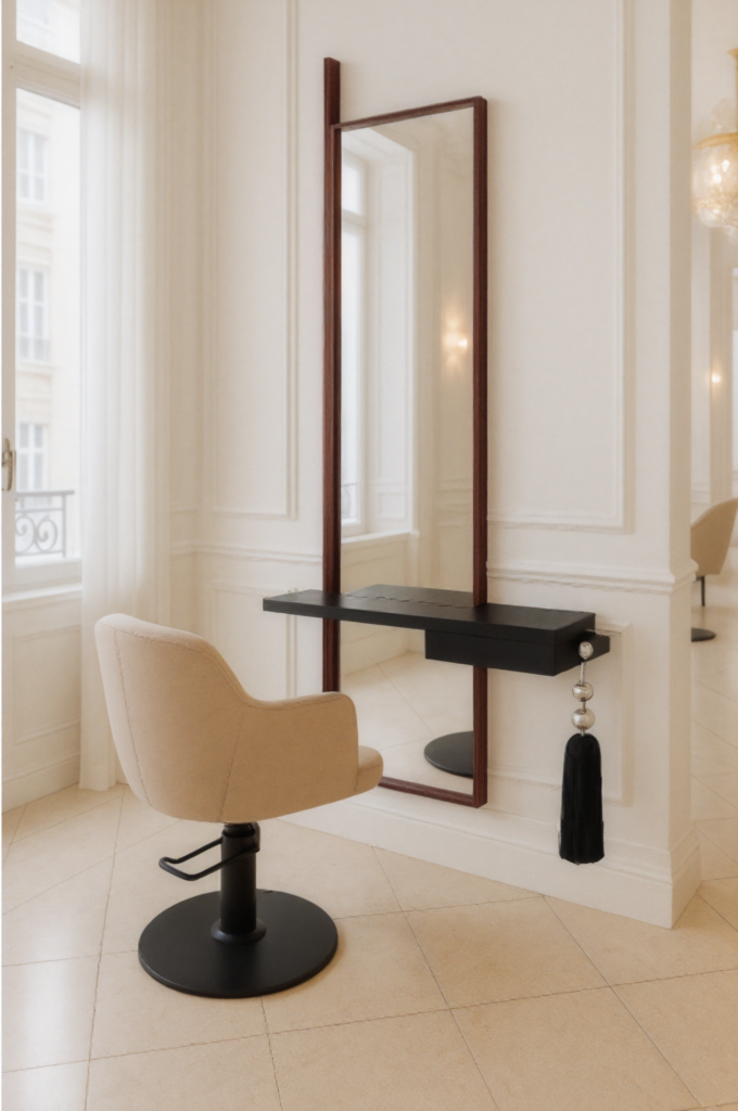 Privilégiez des fauteuils design et confortables, presque comme dans un salon privé. Leur rôle est simple : ralentir le temps, offrir une posture naturelle et permettre au client de se détendre pleinement.