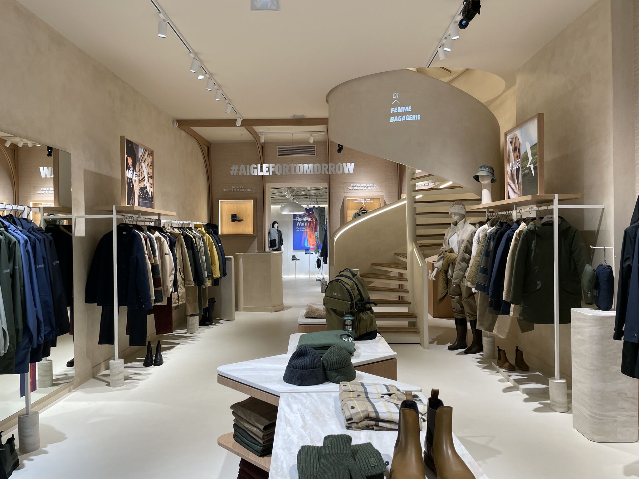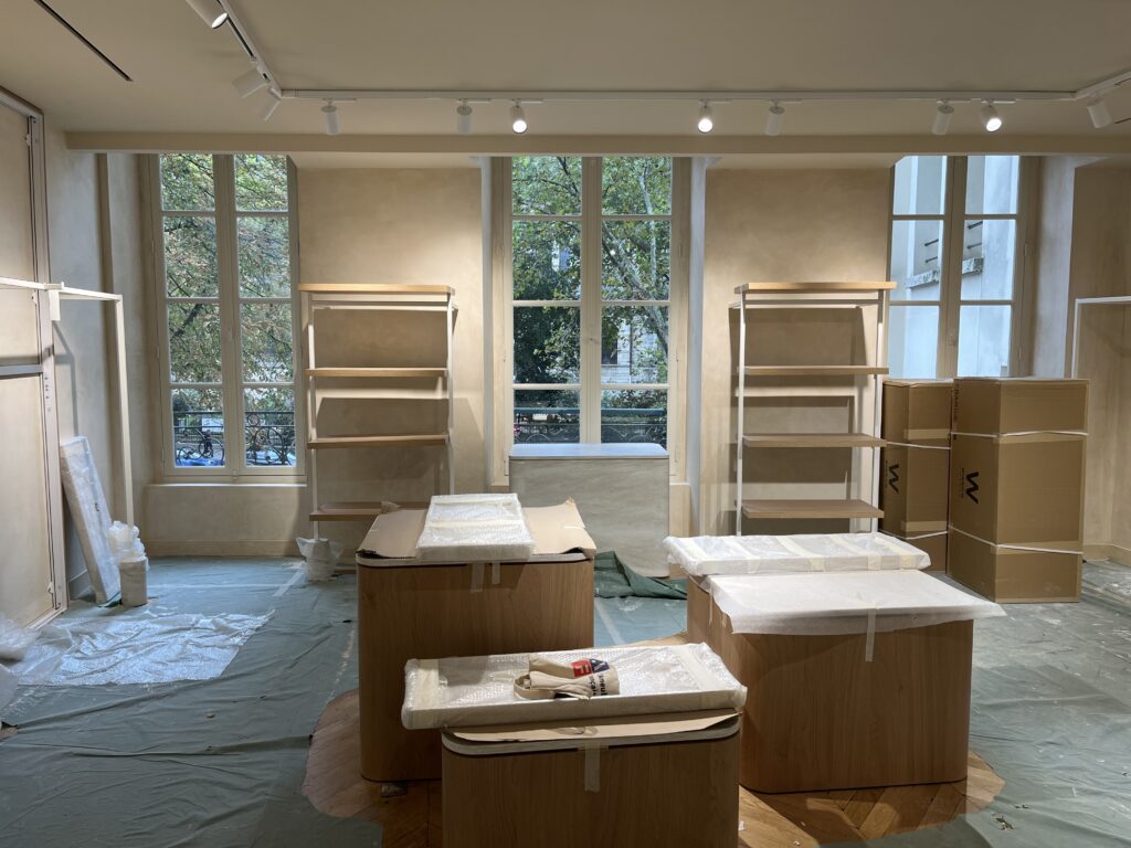 Parmi celles-ci figure notamment la rénovation intégrale et la fabrication complète du mobilier de la boutique Aigle, Boulevard Saint-Germain à Paris.